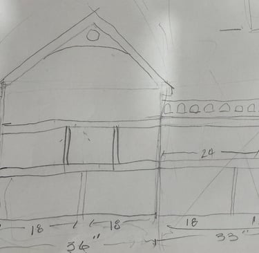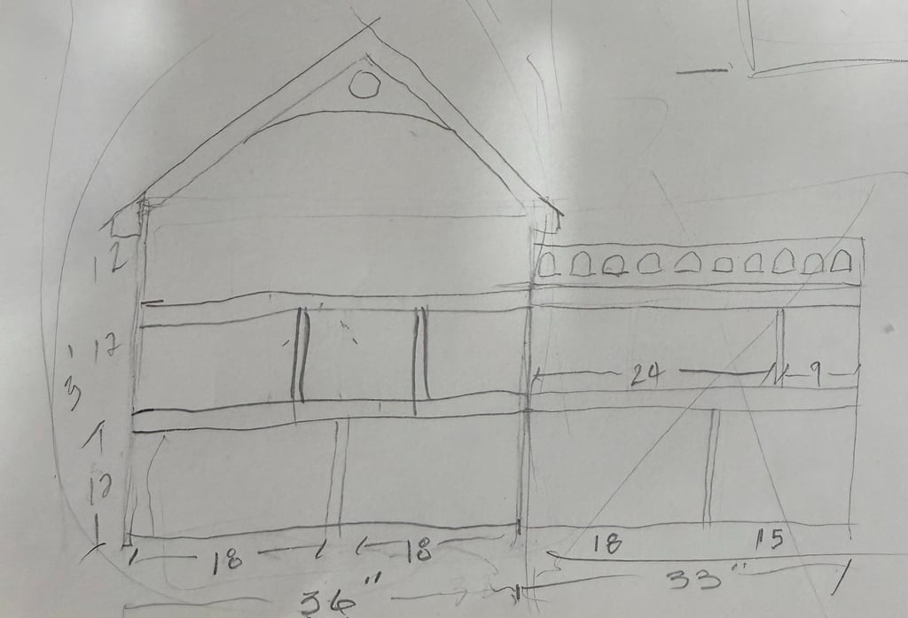 Making a crude sketch for these kind of projects is fun and lets you get some quick feedback. This will also help you envision how to get started. Here is a quick drawing mapping out the dimensions. The plan is to have a 1 inch equals 1 foot scale. This seems to be a really popular scale for a dollhouse. It's called 1:12 or also one-inch scale.